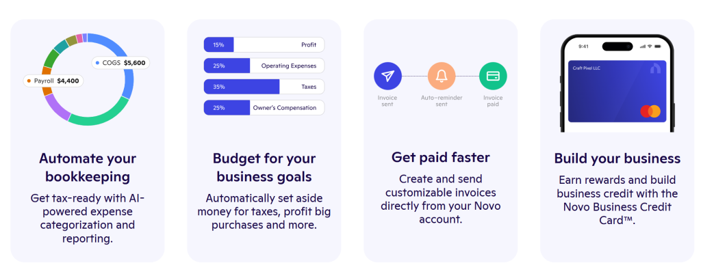 Novo.co is an online bank specifically designed for online business owners, deeply integrated with over 1000 online services to automate data processing.